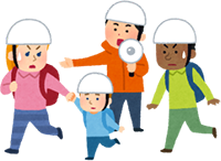 | 例 | 地震が起きました。あわてずに机の下に入ってください。 揺れがおさまったら外に避難します。 |